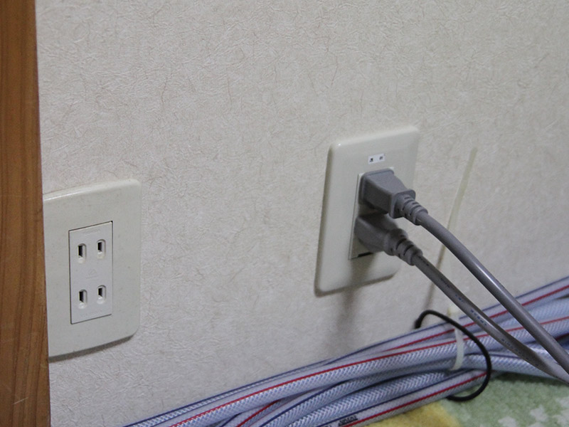 透析装置は14畳の広いLDKに置きました。買ったばかりの新築マイホームに装置が入ると違和感があるかと思いましたが、リクライニングソファよりも装置が小さいため、リビングにもマッチ。「リビングが狭くならなかった!」と板橋さん。透析用に20Aの単独コンセントプラグが必要なため、工事を業者に依頼し、電気回路は天井を這わせてスッキリとした設計にしました。