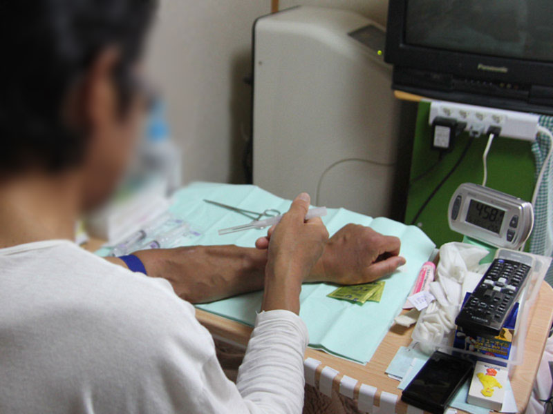 | 通院透析 | 毎食前のリン吸着剤のほか、 造血剤ほか十数種類を服用 |