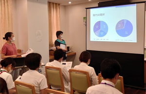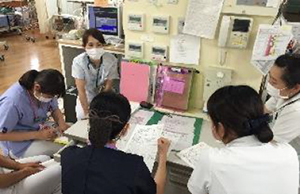 ※月に1~2回、看護師・技士・薬剤師・栄養士・検査技師・事務課など多職種で活動をしています。チームによっては、医師も会議に参加します。